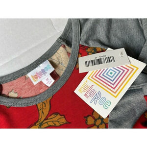 Lularoe randy red & yellow mustard floral top with solid Grey sleeves