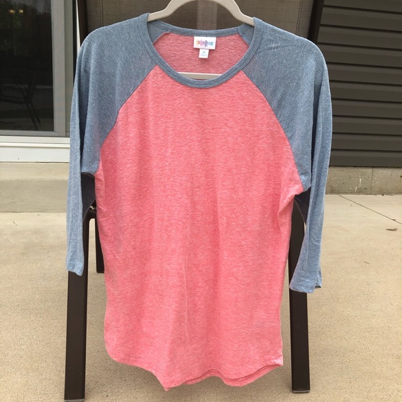 LuLaRoe Randy tee pink & blue. Sleeves are 3/4 length. Love this shirt. Super soft.