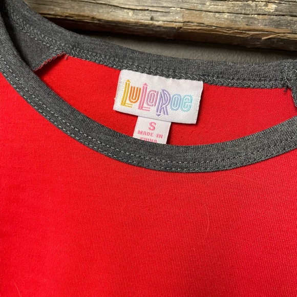 luLaRoe Randy baseball tee. Red body with gray 3/4 sleeves. From pet & smoke-free home