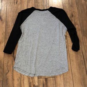 LuLaRoe Top- a Randy, I believe. Only tried on. Didn’t know sizes yet and this did not fit me! It is a tighter fit, so take that into consideration. 3/4 length sleeve. Super cute, love my others that actually do fit! **this top will be cross posted on another sight**