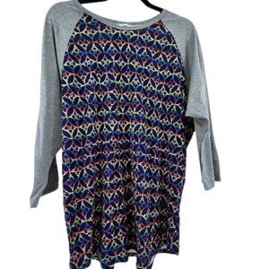 LuLaRoe Randy Tunic Top Size 2XL Baseball T-shirt Multicolored