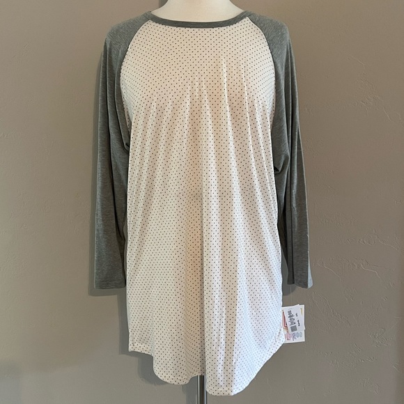 LuLaRoe “Randy” baseball tee. White with grey polka dots and heather grey sleeves. Super soft poly/cotton/rayon blend. New with tags.
