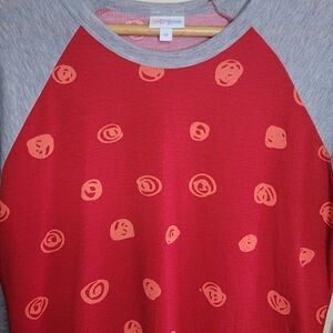 LuLaRoe | Red Dot Print Randy 3/4 Sleeve Raglan Tee.