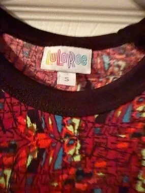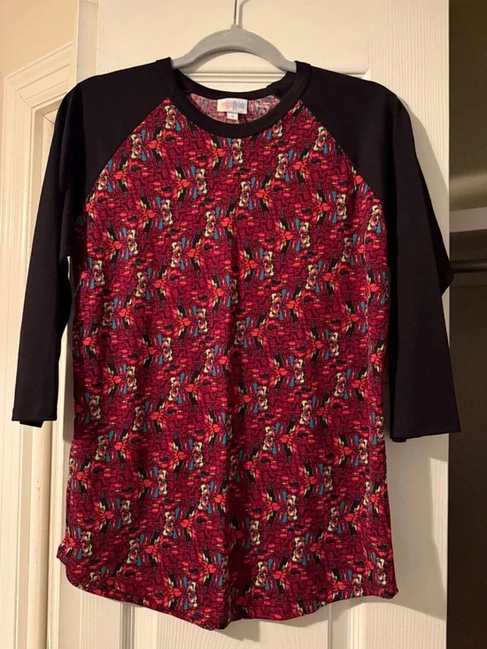 LuLaRoe Red Multi-Color Raglan Randy Tee
