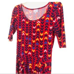 LuLaRoe Red Navy Yellow White Arrow Print Dress (Nichole?)