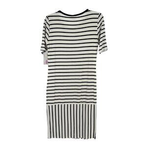 LuLaRoe Retired Julia Dress M Black and White Striped SS Form Fitting NWT