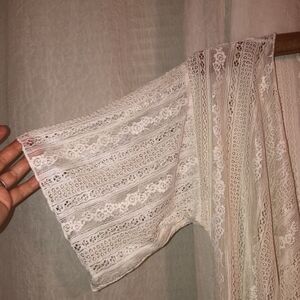 LuLaRoe S Monroe Ivory Lace Short Sleeve Open Waterfall Black Tassel Cardigan