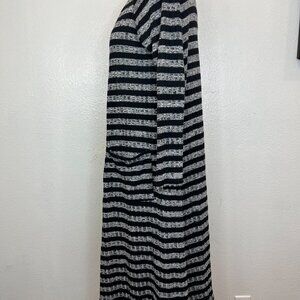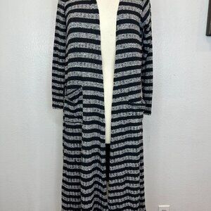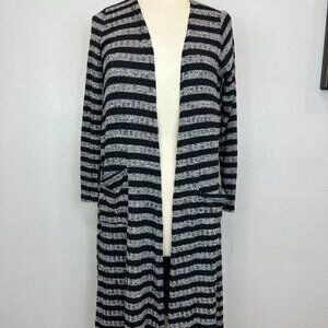 LuLaRoe Sarah Soft Beautiful Striped Gray Black Ribbed Duster Cardigan Size S