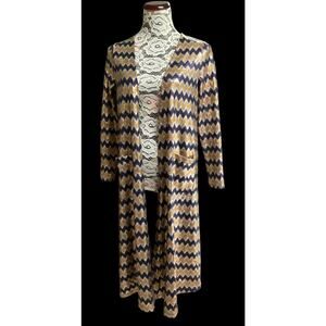 LuLaRoe Sarah duster cardigan gold, silver, and black chevron pattern size S