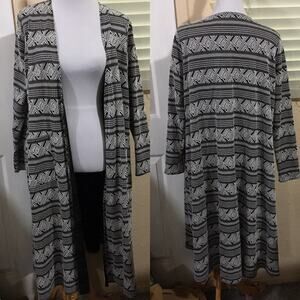 LuLaRoe Sarah noir blanc Aztec duster sweater LARGE