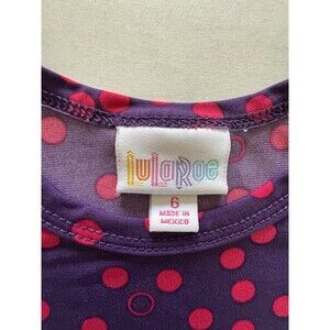The LuLaRoe Scarlett Dress in girls size 6 is a stylish and comfortable option for casual occasions. This dress features a pretty purple color with a pink polka dot pattern, short cap sleeves, and a knee-length fit & flare style. Made from polyester blended fabric, it is easy to care for with machine washable properties. Perfect for summer, fall, or spring, this dress is a great addition to any young girl's wardrobe. Pocket on upper left chest. Silky feeling. Smoke free home. Measurements may not be exact. Cross posted message or comment with questions.