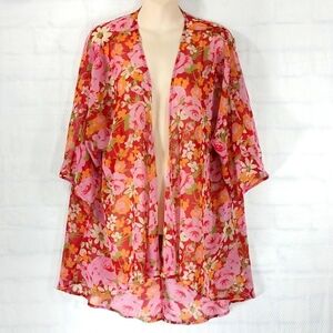 LuLaRoe Semisheer Jacket Topper Hi Lo Open Front Floral Sz M