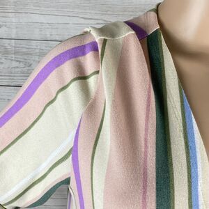 LuLaRoe Simply Comfortable Jacket Large Pastel Pink Ivory Green Blue Striped