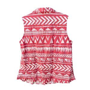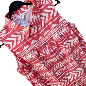 LuLaRoe Size 2XL Roxanne Pink White Aztec Print Sleeveless Snap Front Collared Top NWT