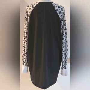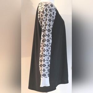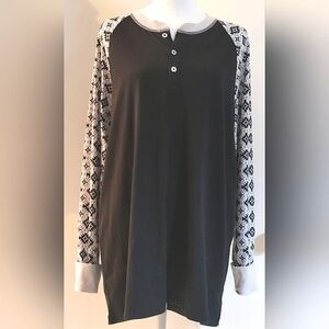 The shirt is stretchy with 3 buttons down in front with crew neck collar