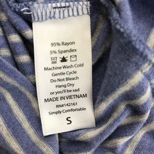 Super stretchy rayon in excellent condition. Blue and grey stripes and grey sleeves