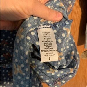 Super cute and soft Randy. Like new! Vintage wash feel. Gray, and navy in color with red ribbons and white dots. 3/4 sleeve length