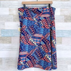 LuLaRoe Stretchy Crepe Azure Skirt Pink Blue Geo Print Womens Plus Size 3XL