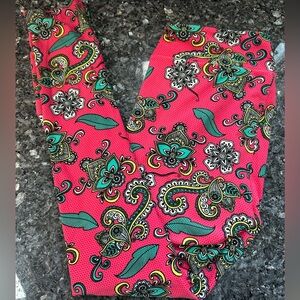 LuLaRoe Tall & Curvy Plus Size 1X Vibrant Pink Polka Dot Paisley Floral Leggings