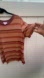 LuLaRoe Tan/Brown Stripped Short Sleeve Top. Tan, Brown, Orange, Burgundy, And Pink Colors Represented. Ruffled Look At The Bottom Of The Sleeves And At The Bottom Of The Shirt. Size Large. EUC. 62% Polyester 35% Rayon 3% Spandex.