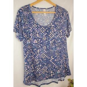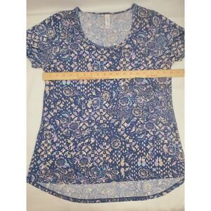 LuLaRoe Top M Classic T Blue Floral Shirt Stretch Womens Size Perfect Shirt