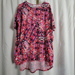 LuLaRoe Tunic Simply Comfortable Medium Pink Purple White Geometric Abstract Top