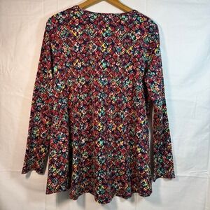 LuLaRoe Tunic Top Long Sleeve Scoop Neck Colorful Print Hi-Low Casual Size L