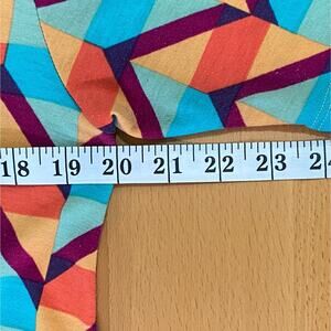 In great preowned condition. Actual item for sale photographed, please see photos for details and measurements. LuLaRoe Tunic Top Women's Large Orange Scoop Neck Colorful Geometric Soft