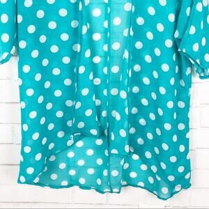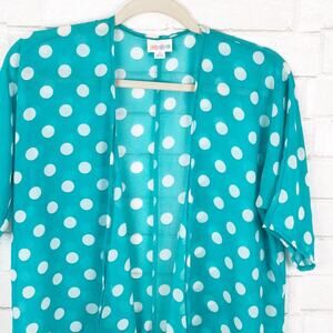 LuLaRoe Turquoise and White Polka Dot Sheer Kimono size 3.