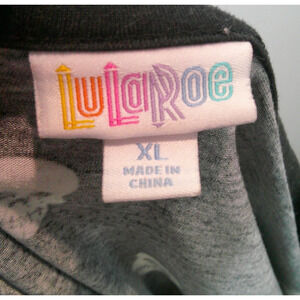 The LuLaRoe V-Neck Black Short Sleeve Shirt with white skulls in Women's XL is a stylish and edgy top perfect for women who want to make a statement with their clothing. The V-neckline and short sleeves provide a flattering and comfortable fit, while the black color and skull theme add a touch of attitude to any outfit. Made by the popular brand LuLaRoe, this t-shirt is a versatile piece that can be dressed up or down for any occasion.