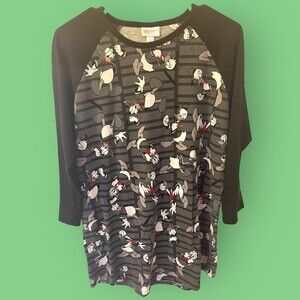 LuLaRoe Woman’s Disney Donald Duck Black Gray White 3/4 Sleeve Top Large Cute