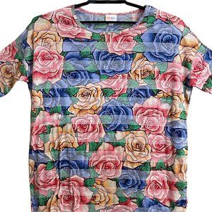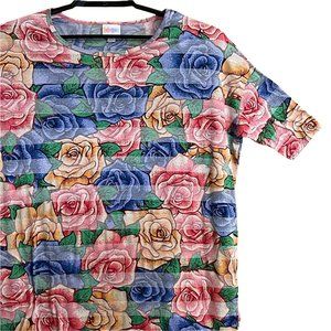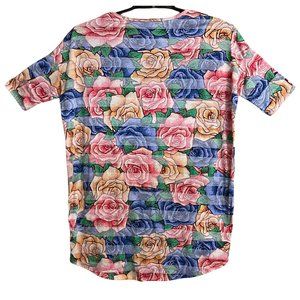 LuLaRoe Women IRMA Top Small Tunic All Over Rose Print High Low Multicolor EUC