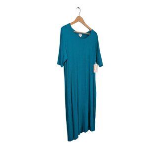 LuLaRoe Womens 2XL Julia Dress Midi Blue Ribbed Knit Bodycon Short Sleeve NWT