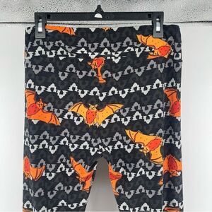 LuLaRoe Women’s Black Soft Stretchy Orange Bat Halloween Leggings Tall Curvy XL
