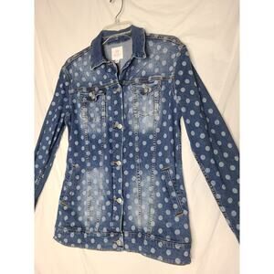 LuLaRoe Women's Blue Polka Dot Cotton Stretch Denim Jacket Medium