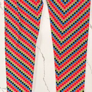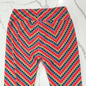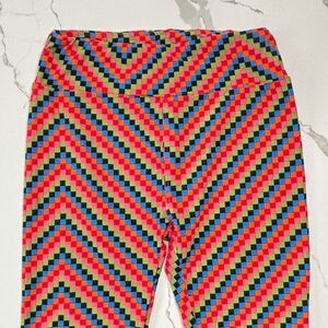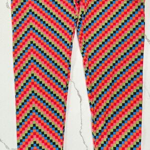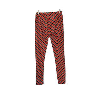 LuLaRoe Women's Chevron Print Orange Multi Checkered Ankle Slimming Leggings OS