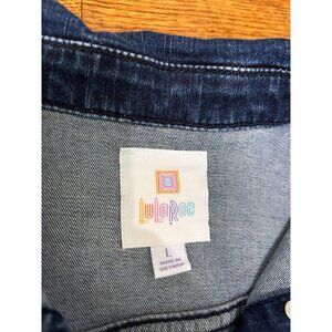 LuLaRoe Womens Denim Jean Jacket Size Large Blue Dark Stretch Floral Embroidered. Great pre owned condition! Little to no wear!