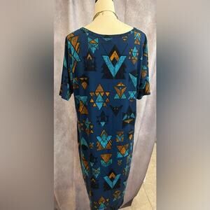 LuLaRoe Women's Geometric Design Blue Good and Black Knee Length Dress Size 3XL