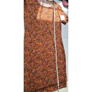 LuLaRoe Women’s Julia Dress, Leaf Floral Print Short Sleeves Rust Brown XL