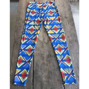 LuLaRoe Womens Leggings One Size Blue Red Yellow Triangles Geometric Soft OS