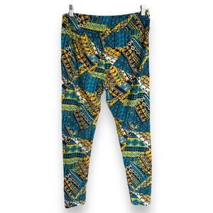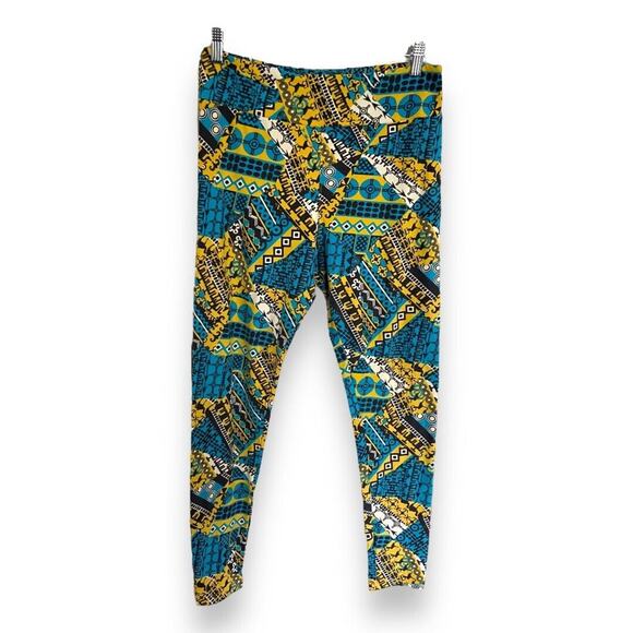 LuLaRoe Womens Leggings Sz TC Blue Yellow Black White Art Deco 12 14 16 18