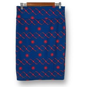 LuLaRoe Women's M Straight Pencil Skirt Blue Red Abstract Star Print Firework