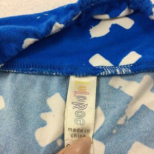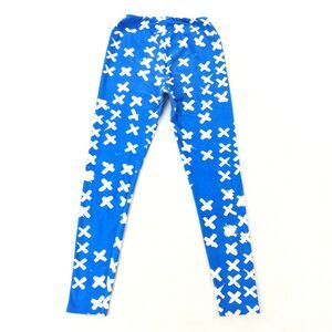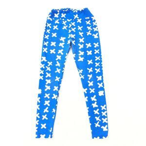 LuLaRoe Womens One Size Leggings Bright Blue White X Mid Rise Pull On Stretch