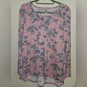 LuLaRoe Womens Pink & Blue Floral Blouse Long Sleeve