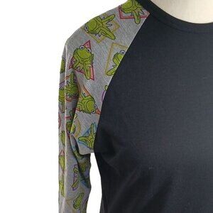 LuLaRoe Womens Size S Raglan Top Kermit the Frog Disney Collab 3/4 Sleeve Tee