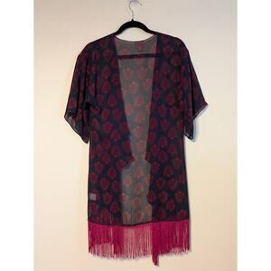 LuLaRoe Women's Size Small Monroe Kimono ~ Allover Print ~ Sheer ~ Fringe Hem