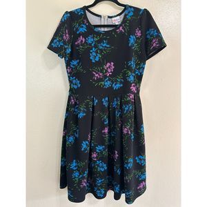 LuLaRoe Women's Textured Stretch Knit Fit & Flare Wildflower Pattern Dress Sz M