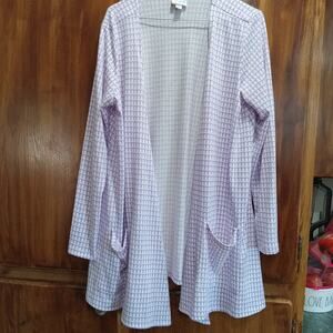 LuLaRoe Womens Violet/White SOFT KNIT Long Open Cardigan POCKETS Medium Nwot