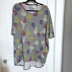 LuLaRoe Women's XL Irma Tunic T-Shirt Gray Parachute Print High Low Stretch