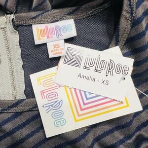 LuLaRoe Womens XS Gray Blue Striped Amelia Stretchy Flare Dress NWT (A0126)